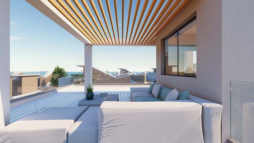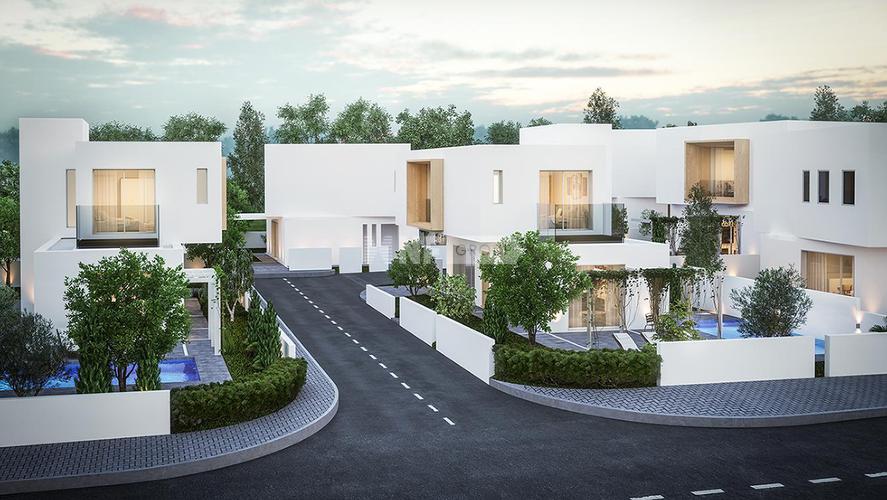 Новая современная вилла строится в жилом комплексе в Хлораке – живописной прибрежной деревне в пригороде Пафоса.