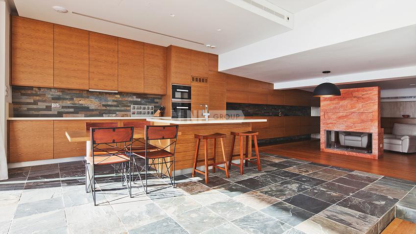 Техническое оснащение включает лифт, систему видеонаблюдения, сигнализацию, датчики дыма, подогрев полов, систему кондиционирования, телевидение, электрические жалюзи, систему умный дом и охранную систему.