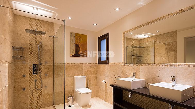 Вилла включает 5 спален с ванными комнатами, домашний кинотеатр, игровую комнату, тренажерный зал, сауну, джакузи, 3 полностью оснащенные кухни.
